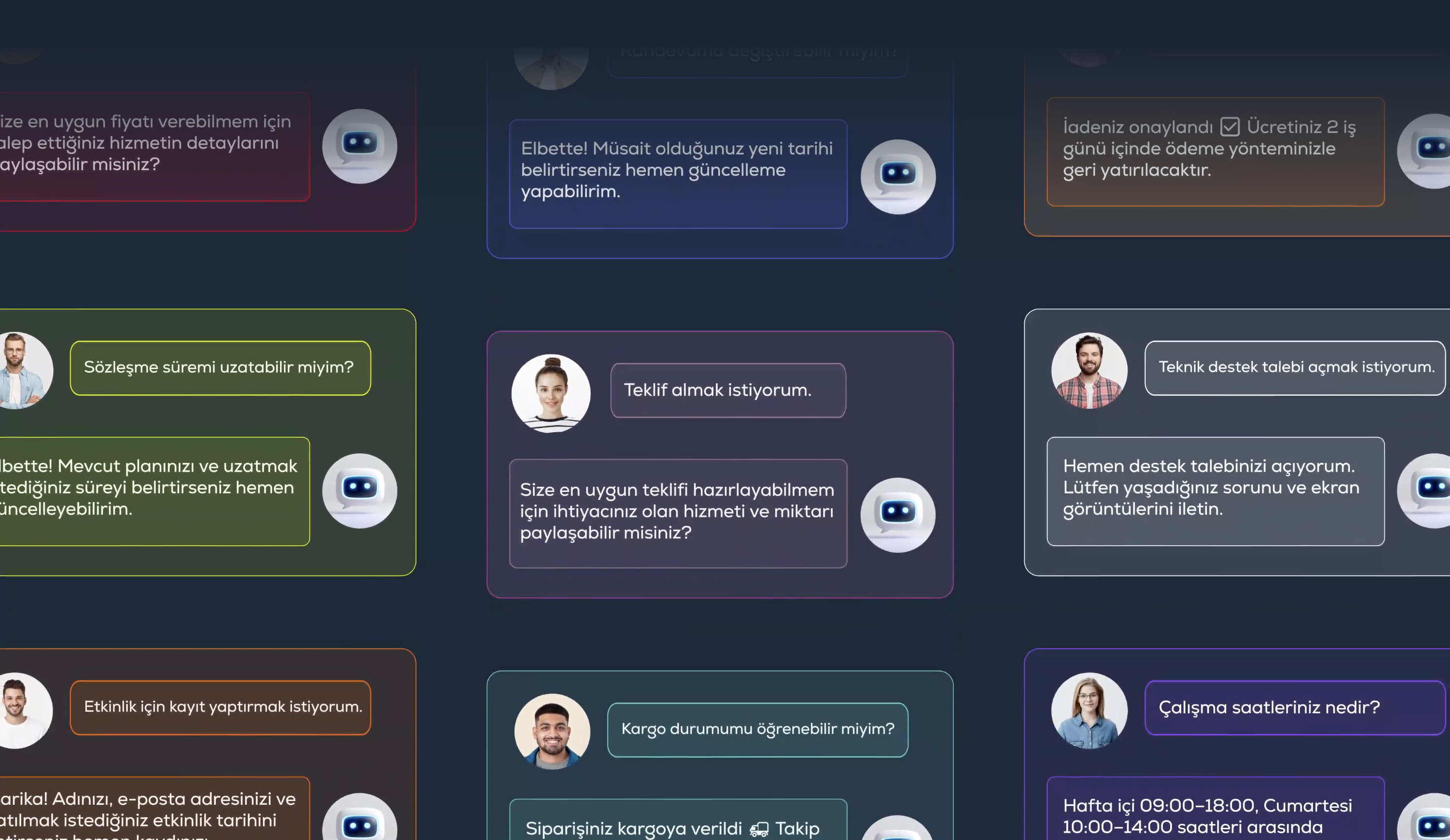 - • Çok adımlı yönlendirme: randevuya götüren, ön nitelendirme yapan akışlar